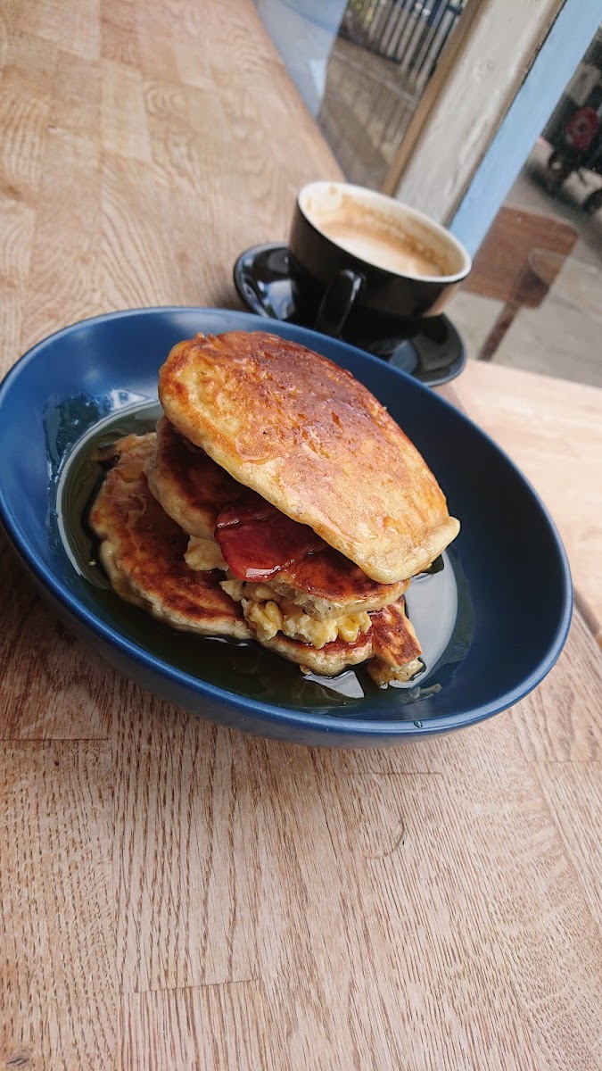 What a wonderful place for a delicious breakfast. The pancakes with apples, maple syrup and cinnamon were just perfect! One small thing... The expresso... Is more of ristretto sized. You might find better to order it double. But on the very bright side, it's a specialty coffee blend and very good.